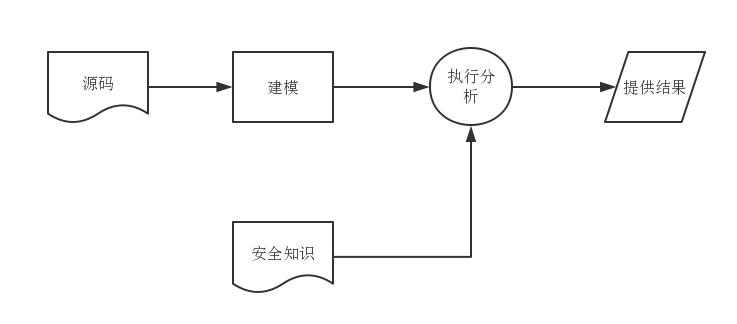自动化审计的实现方式有多种,比如直接使用正则表达式规则库进行定位匹配,这种方法最简单,但是准确率是最低的。最可靠的思路是结合静态分析技术领域中的知识进行设计,一般静态分析安全工具的流程大多是下图的形式: