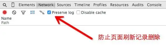 首先把Preserve log选项勾上,这样用来防止页面刷新跳转的时候访问记录被重置,也方便我们进行下一步的筛选。