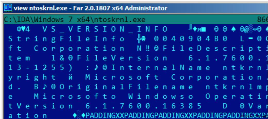 在Windows中,许多win32函数带有后缀 -A和-W。第一种类型的函数用于处理普通字符串,第二种类型的函数用于处理UTF-16LE(wide),每个符号存储类型通常为16比特的short。 UTF-16中拉丁符号在Hiew和FAR中看上去插入了0字节: