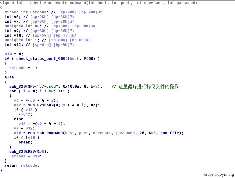 一旦破解成功,会将该IP地址的信息保存到good2文件中,并将当前目录下的所有.mod文件全部复制到远程服务器的/tmp/.xs目录下,然后设置可执行属性并依次执行这些文件。
