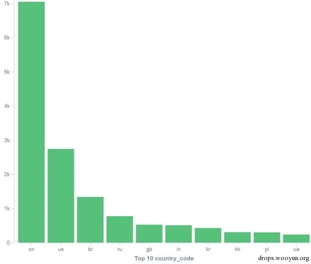 我们根据之前提到的9000端口特征,8月底的时候在全网范围内进行了一次排查,结果如下:全球共感染主机23367台,其中中国是受影响最多的国家 达到7000+