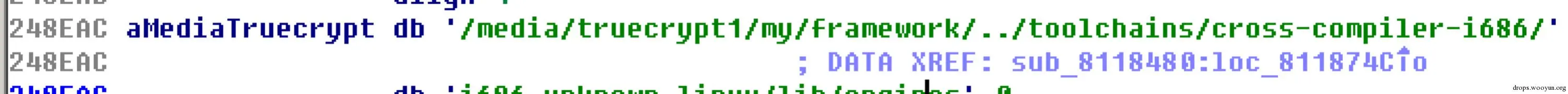 在分析代码的过程中,我们发现了一些有趣的信息,蠕虫的编写者有使用truecrypt的习惯,编译在bin中的路径字符串泄露了这一点。