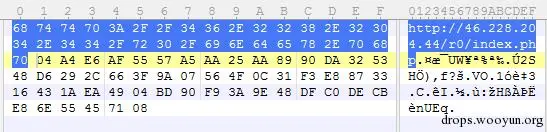 第一部分红线标注的即为上线IP地址,蠕虫此时会连接IP的9000端口,获取实际的上线地址,并连接到该地址,请求名为http://IP:9000/srv_report&ver=0的URL, 并从这个url中得到实际的C&C地址,下图是我们捕获到的srv_report,格式如下所示: