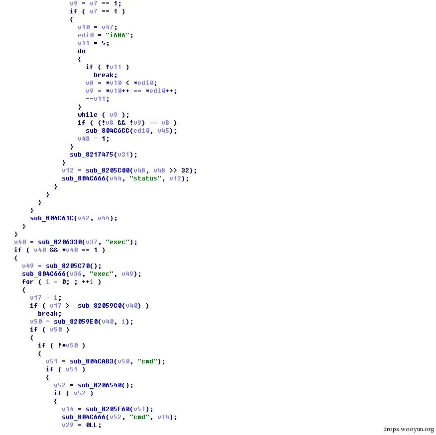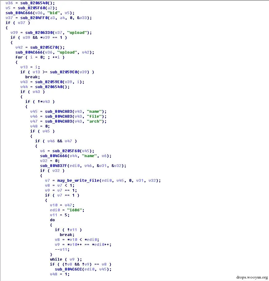 手工脱壳后继续分析,整个ELF文件静态链接,并且被stripped。蠕虫支持在i686、mips、arm架构的linux上运行,能够适应在各种小型被裁剪过的路由器上进行传播。通过对脱壳后的bin中关键字符串进行查看,发现其集成了openssl、libssh2、libevent, libcurl等库,其中openssl的库给出了版本号以及发布时间等信息,让我们得知此恶意蠕虫属于被近期投放,要晚于2015年6月12日。X-Team在捕获改样本时,VT上并没有发现有过历史提交。