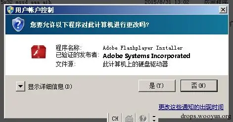 首先我们在win7系统下先打开procmon监控软件,清除一下日志信息,然后运行我们的目标文件install_flashplayer15x32_mssd_aaa_aih,运行过后会弹出UAC选项,需要用户确认授权。