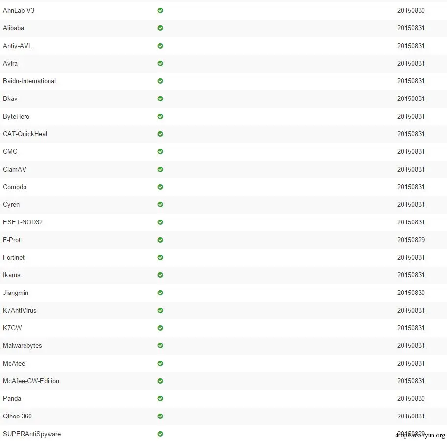 各杀软厂商对shellcode这种检测和防御也不够严格,直接从msf中提取的shellcode,没做任何变形和过杀软处理,然后virustotal网站上扫描结果如下: