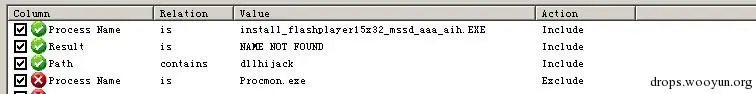 然后是过滤掉加载系统的dll文件,只看安装包当前目录下加载的dll文件,我这里安装包存放在dllhijack文件夹下,添加过滤规则: