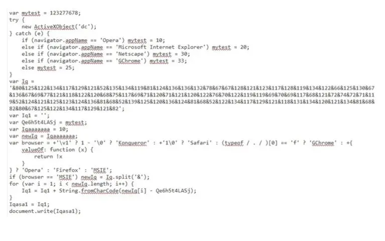 - 我们发现了一个特别制作且经过混淆的frame.php文件,在这个文件中携带着一些漏洞代码,并且会把用户重定向到其他的漏洞页面:利用了CVE-2010-0842,CVE-2006-3730,MS06-057和其他未知的漏洞。