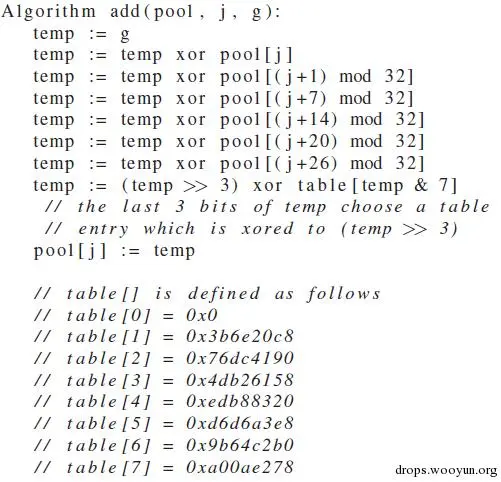 更新熵池 熵池的更新机制基于TGFSR(Twisted Generalized Feedback Shift Register)。