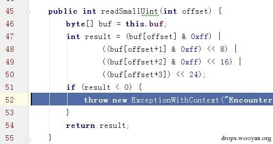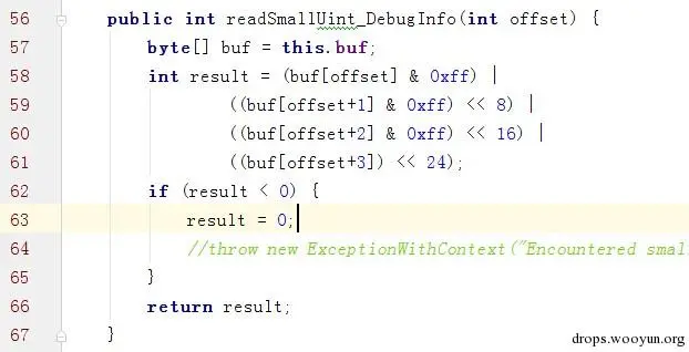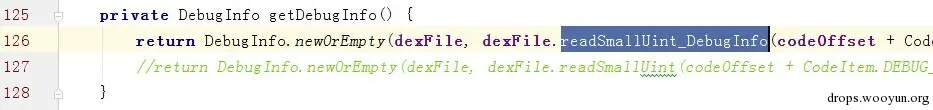 为了保险起见,在readSmallUint方法后面添加一个新方法readSmallUint_DebugInfo,复制readSmallUint的代码,if语句内result赋值为0并注释掉抛异常代码。
