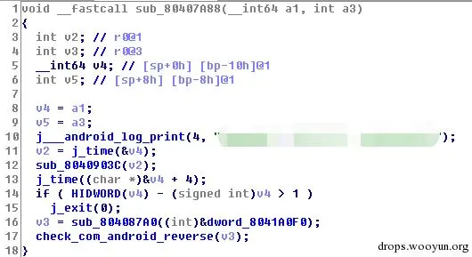 其中函数sub_80407A88的代码如下,通过检测时间差来检测是否中间有被单步调试执行: