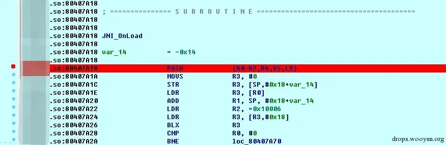此时,可在IDA中正常下断点调试,这里我们断JNI_OnLoad和init函数。