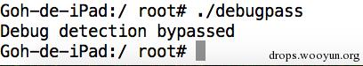 当一个应用被调试的时候,会给进程设置一个标识(P_TRACED),可以检测该进程是否有设置这个标识来检测进程是否正在被调试来保护应用。如果该程序发现自己被调试器附加了进程,那么将会输出Debugger attached,如果正常运行该程序则会输出Debug detection bypassed。实验结果如下: