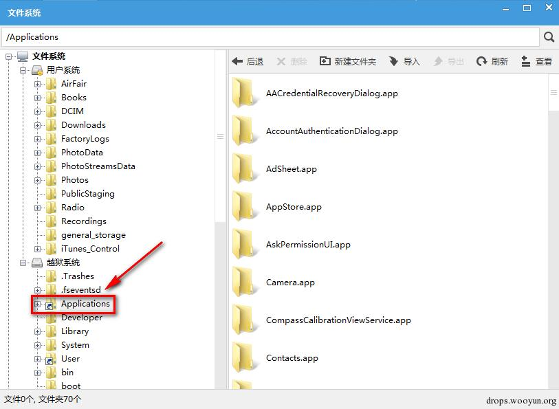 fstab文件通常被越狱工具替换使root分区有读写的权限,但是APP不允许查看该文件的内容,所以我们使用stat函数获得此文件的大小,再根据文件的大小来判断是否越狱。我这里显示越狱后该文件的大小为67字节,有资料中说如果没有越狱该文件的大小应该为80字节。