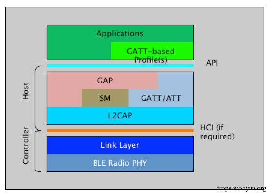让我们继续回到技术之上。我们想要的应该不是坐享其成。所以让我们试着了解一下ble,先看看ble栈长什么模样(如图1 所示)。