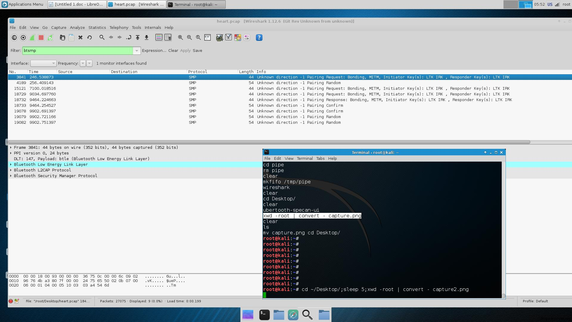 抓到包之后我们最关心的问题是我们有没有抓到的足够的包来破解tk。所以在wireshark中你可以在filter处加上btsmp,确保抓到了我们需要的6个包。