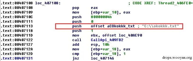 图8. 通过判断“C:\okokkk.txt”文件来防止重复感染