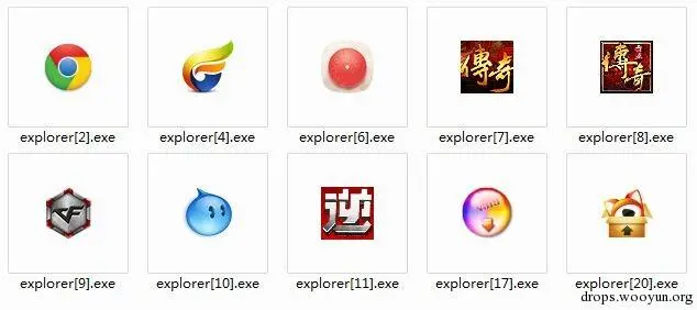 Explorer.exe为了逃避杀软的查杀,其更新速度非常块,平均2-3小时更新变种一次,其变种除了修改代码以逃避特征外,其图标也经常变动,以下是收集到的explorer.exe文件的部分图标,可以发现主要是使用一些知名软件的图标进行伪装。