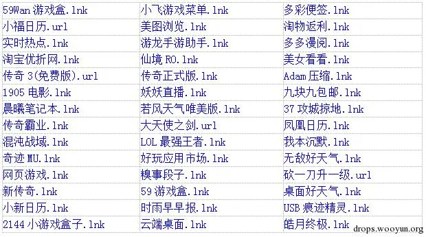 “黑吃黑”是此木马的一大特色,木马运行后专门创建了一个线程,用于检测和删除其它软件的桌面快捷方式、开始菜单项中的目录等,删除的项目大部分为流氓软件,其内置的列表堪称流氓软件大全,涵盖大量的流氓软件,以下只是列表的一部分。