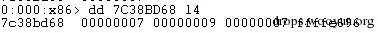 调试可以看到如下内存,ecx的内存如下,ecx+0xc就是上面解析第一个smartTag标签时写入的值,最终计算得到的被覆盖的地址便是0x7c38a428: