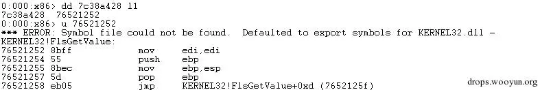 而在覆盖之前0x7c38a428处的指针指向kernel32! FlsGetValue: