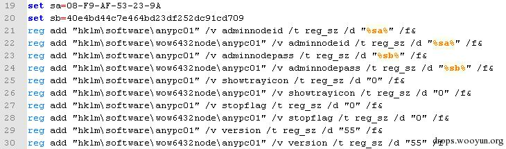 因为网灵受控端安装包在安装时需要填入网灵服务id和密码,并将这些信息保存到注册表hklm\software\anypc01中: