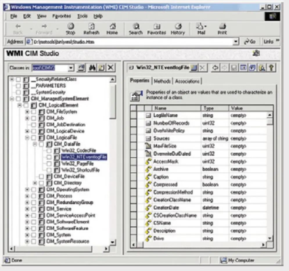 WMI 代表着大多数与操作系统信息以及以对象的形式操作有关的数据。一个 WMI 对象是高度结构化定义的信息被如何表示的类的实例。在 MSDN 上,有很多常用的 WMI 类的详细介绍。例如,常见的、有据可查的 WMI 类是 Win32_Process。还有很多未文档化的 WMI 类,幸运的是,所有的 WMI 类都可以使用 WMI 查询语言 (WQL) 进行查询。