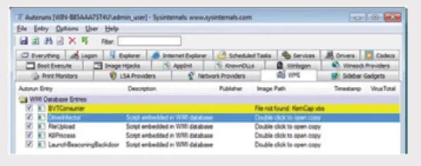 恶意软件可以使用 WMI 对通用的虚拟机和沙盒环境进行检测。例如,如果物理内存小于 2 GB 或者是单核 CPU ,那么很可能操作系统是在虚拟机中运行的。