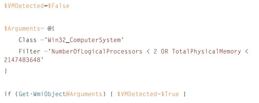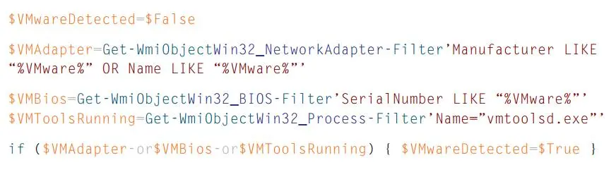 图 7 :检测 VMware 虚拟机的 PowerShell 代码
