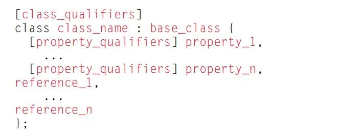 CIM 类属性可以通过实例对象路径引用其他类的现有实例。这被称为引用。在 MOF 中定义类实例的引用,需要使用 ref 关键字作为属性的数据类型的一部分。例如,图 22 列出的 MOF 语句用于声明一个命名为 NewRef 的类引用,它指向了 ExistingClass 类的一个实例。
