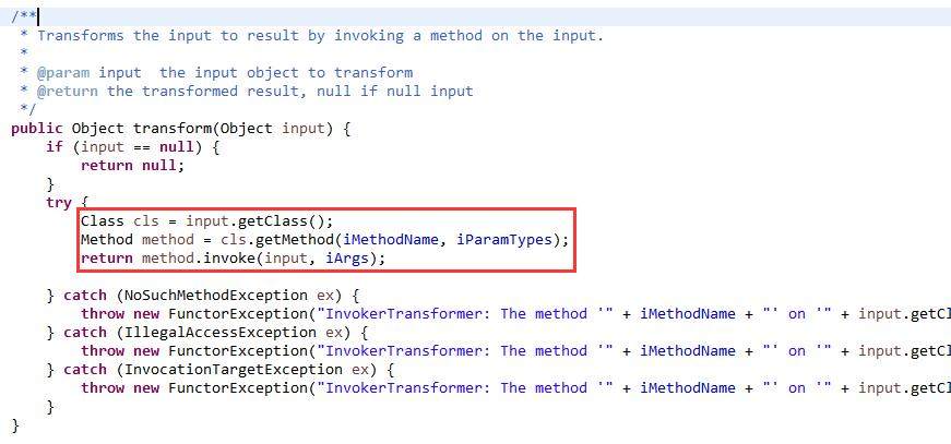 其中,国外研究人员发现类InvokerTransformer中的transform方法允许通过反射执行参数对象的某个方法,并返回执行结果。