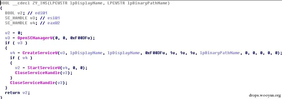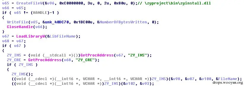 图7. Zyinstall.dll的接口实现,主要功能是以服务的方式加载驱动