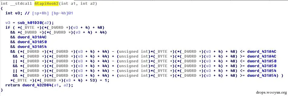 Secdrv2.sys的主要功能是通过atapi hook,保护木马的3个驱动文件不被访问、删除等。