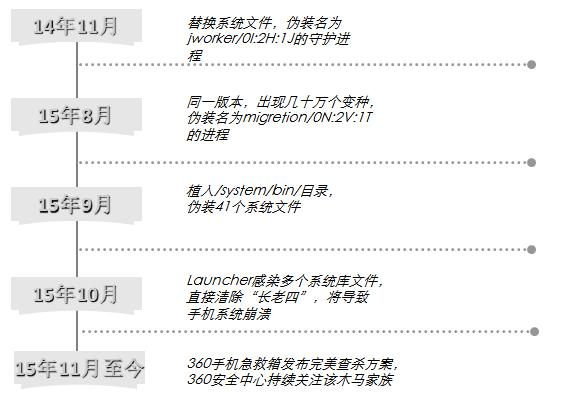 去年11月份,360安全团队截获了恶意手机木马“长老三代”,详细剖析挖掘了长老木马的整个有机生态链。并从传播源头开始进行强力打击,致使猖狂一时的长老木马迅速地消声灭迹。近期360安全团队发现改头换面的新版长老木马又“重出江湖”。