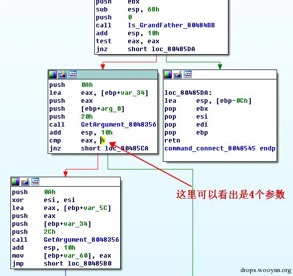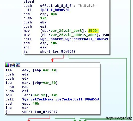 连接8.8.8.8的53端口,探测网络是否连接到Internet,处理函数地址为0x8049B90。