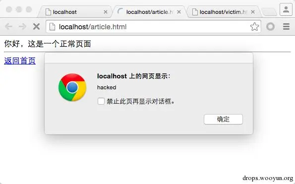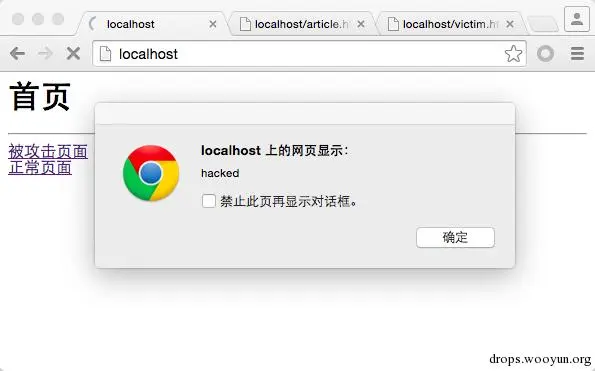 这时候再看正常页面,也被攻击了: