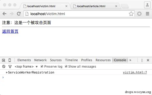 首先在 https 站点中找到一个 Xss,利用 Xss 注册一个 serviceWorker.registration 实例: