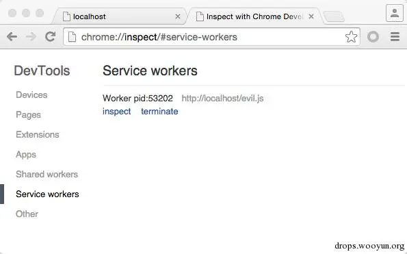 2014年底的时候,这种漏洞的利用条件没有现在苛刻(比如没有Service-Worker-Allowed头),一年过来 W3C 对规范优化了不少(包括安全方面), 相信不久的将来,很快会被标准更新所扼杀了。