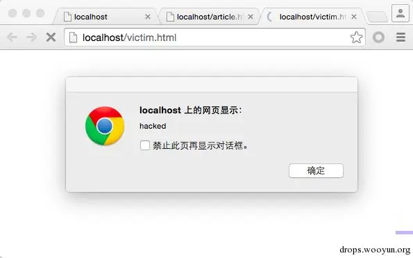 这时候点击被攻击页面,此页面事先被注入了 XSS 脚本: