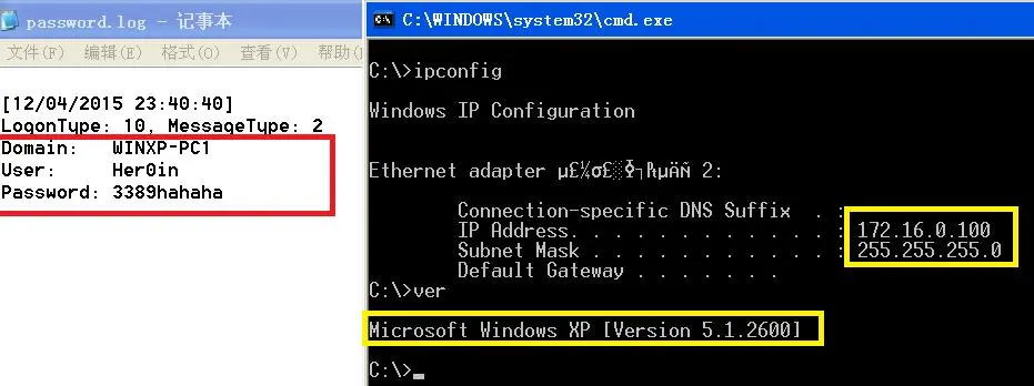 图 18:在 XP 中已经安装了某记录登录密码的程序,可以记录任何成功或失败的登录信息 :D,上图中可以看到管理员输入的登录信息。