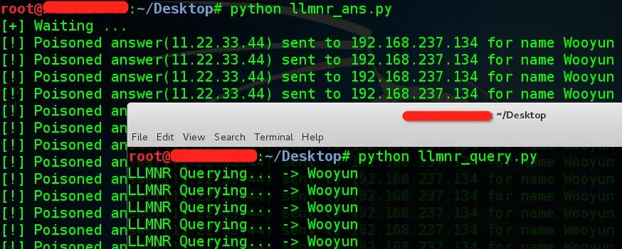 通过上面的内容,可以很直观的理解 LLMNR 进行名称解析的详细过程。使用 Python 可以快速实现 LLMNR 协议的质询和应答编程。