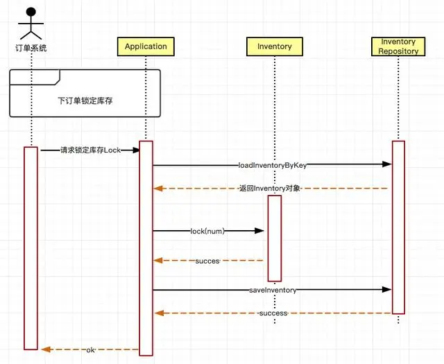 ository根据主键load还原Inventory这个对象,然后执行对应的lock(num)方法改变这个Inventory对象的状态(属性也是状态的一种),然后再通过Repository的save方法把这个对象持久化到存储去。