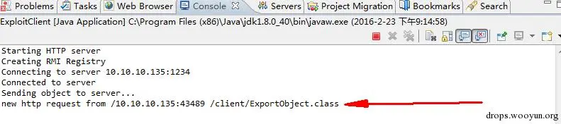//访问rmi服务时,会转到该url地址中下载client.ExportObject类,并新建对象。