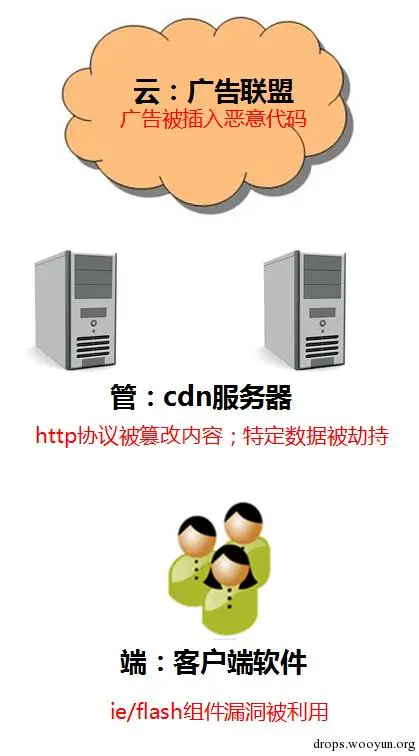 从3月5日开始,腾讯反病毒实验室监控到大量知名软件客户端存在释放下载器病毒的异常数据,预示着可能存在通过挂马方式大规模攻击知名软件客户端的行为。电脑管家紧急对相关数据进行分析排查,最终发现这是一起综合利用运营商监控缺失、网络广告商审核不严、客户端软件存在安全漏洞等多重因素进行的大规模网络攻击,其攻击方式就多达3种(参见下图)。