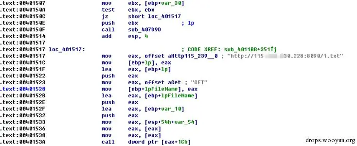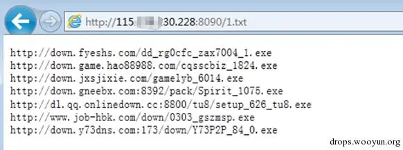 分析到下载列表: hxxp://115******30.228:8090/1.txt