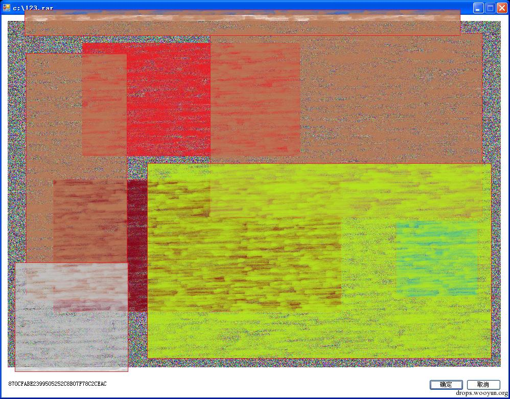 脑袋灵光一闪,这办法可以啊!我先想到的是把BASE64串按能分辨的最小字号写在窗体上,然后进一步想到干脆利用窗体上的像素,一个像素表示一个字节,然后直接想到干脆一个像素用RGB分量存储三个字节,这样可输出的数据量就成几何级数上升。稍微计算了一下,按最高密度的数据传输方案,一个窗体能被截图下来的最大面积足够“画下”压缩过的完整目标数据。