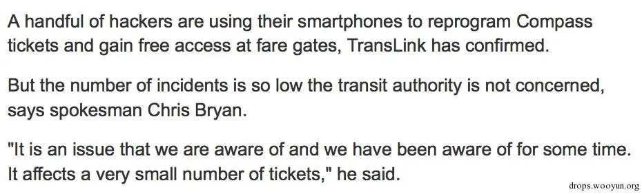 - http://bc.ctvnews.ca/security-flaw-lets-smartphone-users-hack-transit-gates-1.2852464