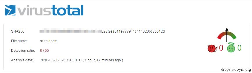 值得注意的是,该系列样本中的宏代码是大量具有正常功能的宏代码,而攻击者将恶意代码分散插入到正常的宏代码中,如果不仔细观察,很难察觉到正常的宏代码中包含恶意代码。并且恶意代码中将需要操作的对象名称混淆编码后隐藏在了控件UserForm2.Image1的ControlTipText属性中,下载URL也通过加密的方式保存,这样具有比较好的免杀效果,VirusTotal上仅有6家杀软可以查杀更是证明了这一点!